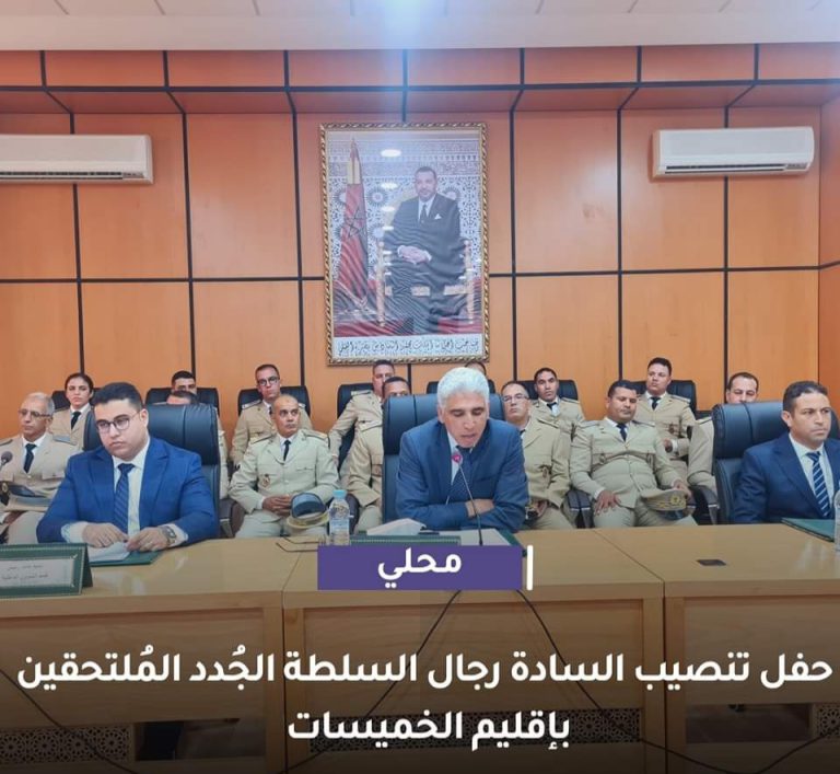 حفل تنصيب مجموعة من عناصر رجال السلطة الجُدد من مختلف الرتب، والذين تم تعيينهم مؤخراً بتراب الإقليم في إطار الحركة الإنتقالية الأخيرة التي أطلقتها وزارة الداخلية بتاريخ 5 غشت 2023 والتي تأتي في إطار الدينامية الإدارية التي حرصت وزارة الداخلية على القيام بها بإنتظام، تنفيذا وتنزيلا للتعليمات الملكية السامية لملك البلاد، لتحديث وتطوير التدبير الترابي وجعله مواكبا للدينامية الإقتصادية والإجتماعية التي تعرفها المملكة المغربية.