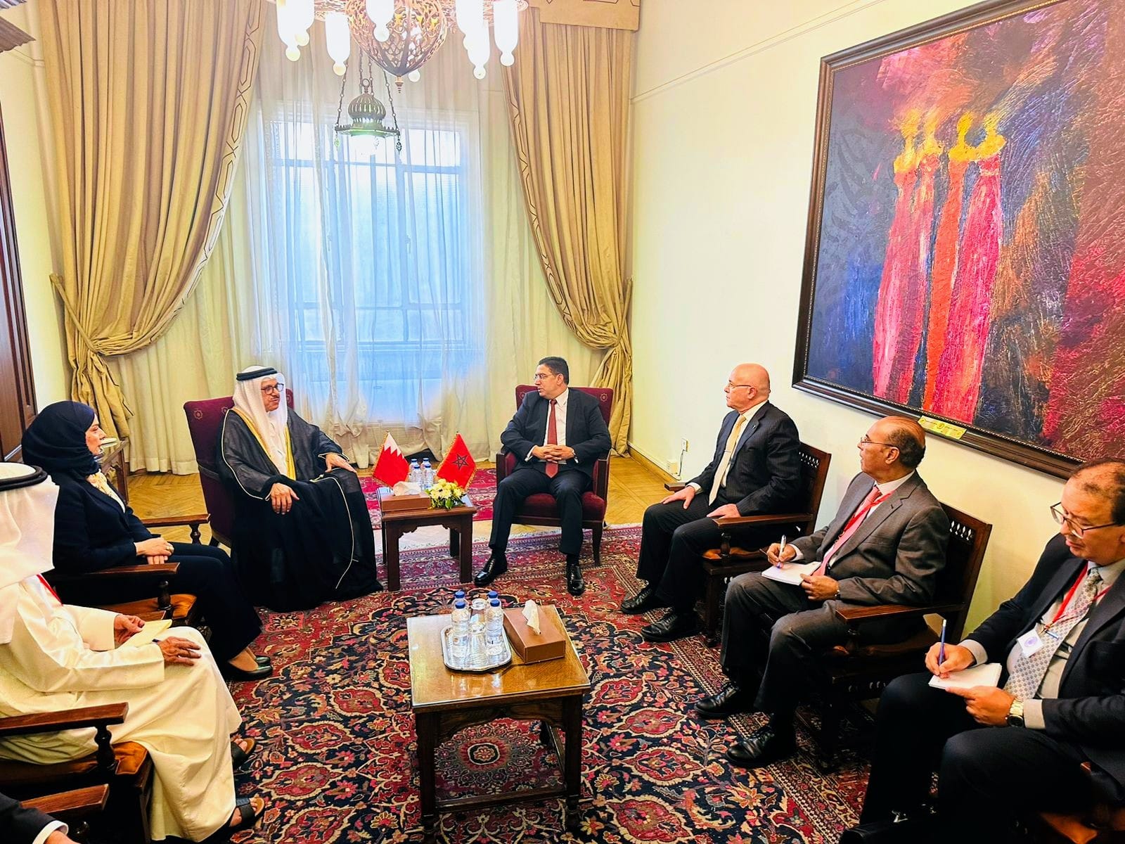 وتناولت المباحثات العلاقات الثنائية، حيث عبر الجانبان عن ارتياحهما للمستوى المتميز لعلاقات التعاون والتضامن القائمة بين البلدين، بفضل الرعاية السامية لصاحب الجلالة الملك محمد السادس، نصره الله، وأخيه صاحب الجلالة الملك حمد بن عيسى ا ل خليفة.