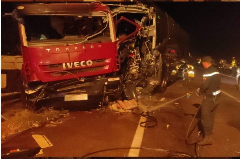 وقعت في هذه الاثناء ، حادثة سير مميتة بين شاحنة من الحجم الكبير وحافلة لنقل المسافرين بأيت عكي حوالي ثلاتة كيلومترات على مقربة من مدخل مدينة الخميسات بالطريق السيار. وحسب مصادر من عين المكان أكدت أن شاحنة من الحجم الكبير “رموك” دهست حافلة لنقل المسافرين. فيما يتحدث المتواجدون في عين المكان عن وفاة مساعد السائق وإصابة 14 أخرين.