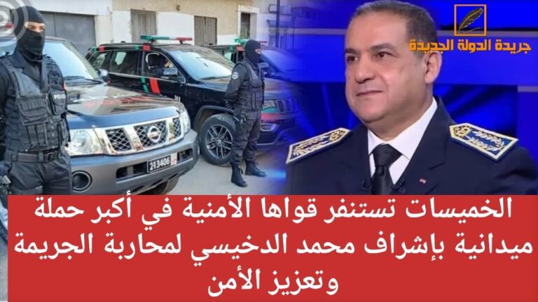 في خطوة نوعية تعكس الحرص الكبير على حماية أمن المواطنين وسلامتهم، حلّ السيد محمد الدخيسي، المدير المركزي للشرطة القضائية، بمدينة الخميسات يوم الثلاثاء الماضي، بتعليمات مباشرة من المدير العام للأمن الوطني ومراقبة التراب الوطني، السيد عبد اللطيف الحموشي، للإشراف على أكبر حملة أمنية تشهدها المدينة منذ سنوات.