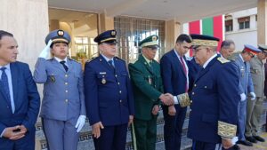 وبإيقاع رسمي مهيب، قدمت فرقة القوات المساعدة التحية للسيد العامل والوفد الرسمي، قبل أن يتم رفع العلم الوطني في لحظة محمّلة برمزية تاريخية عميقة. كما قام عامل الإقليم بتبادل التحية مع ممثلي المجتمع المدني والشخصيات الحاضرة، بما يعكس قيم التواصل والتقدير للمجهودات المحلية في خدمة الشأن العام.